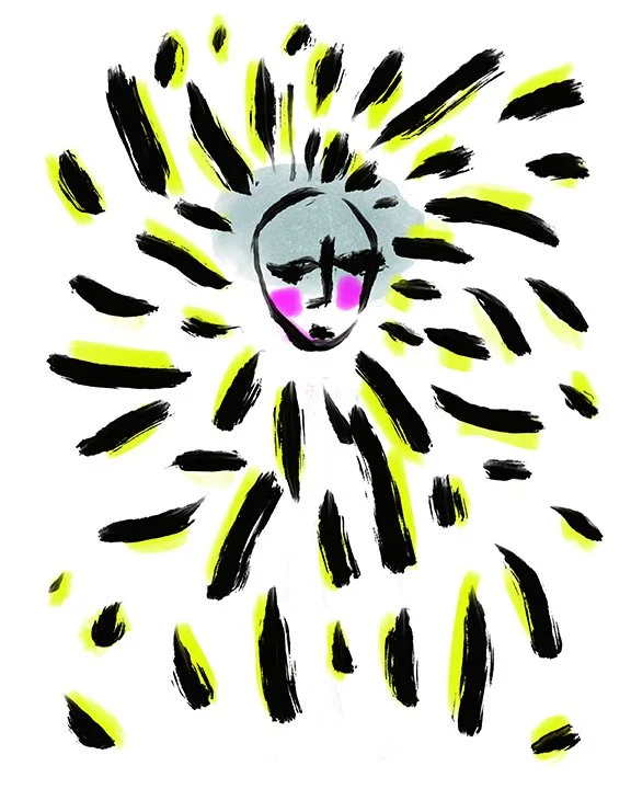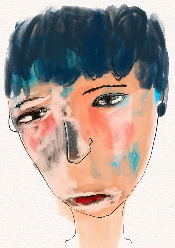 Day 1. I was trying to capture how we might think we look like when we are embarrassed. Our attempt to fade into the background.