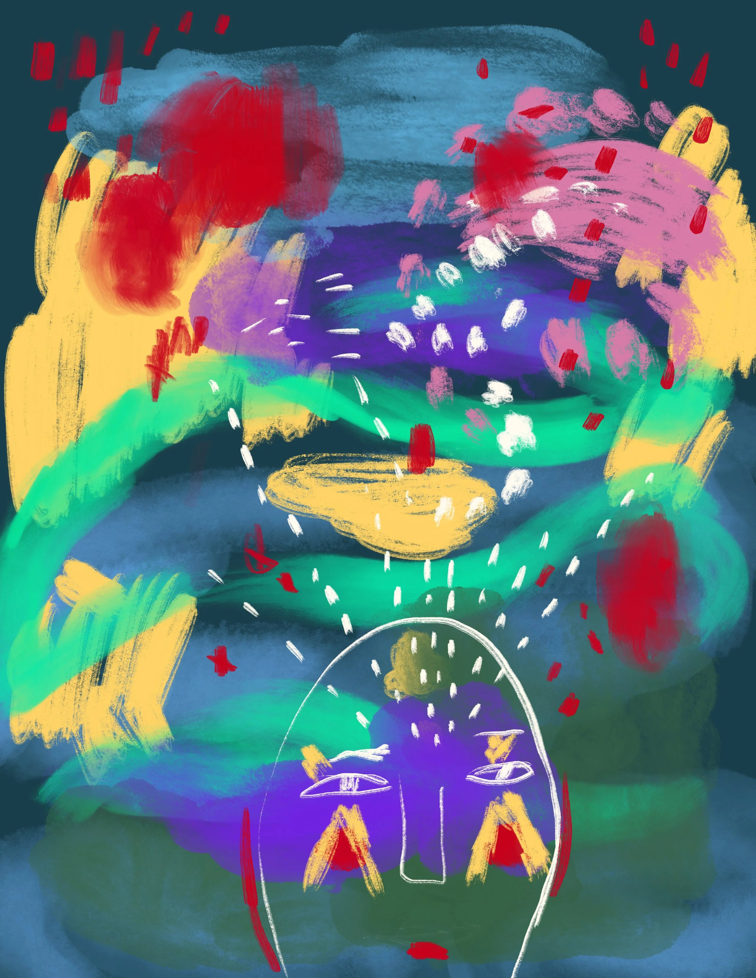 Day 3: A more accurate depiction of how I feel when I am overwhelmed. So many things going around, up and down, in and out. I can sit with my hand on my heart and see it, but that doesn’t really help or change it.