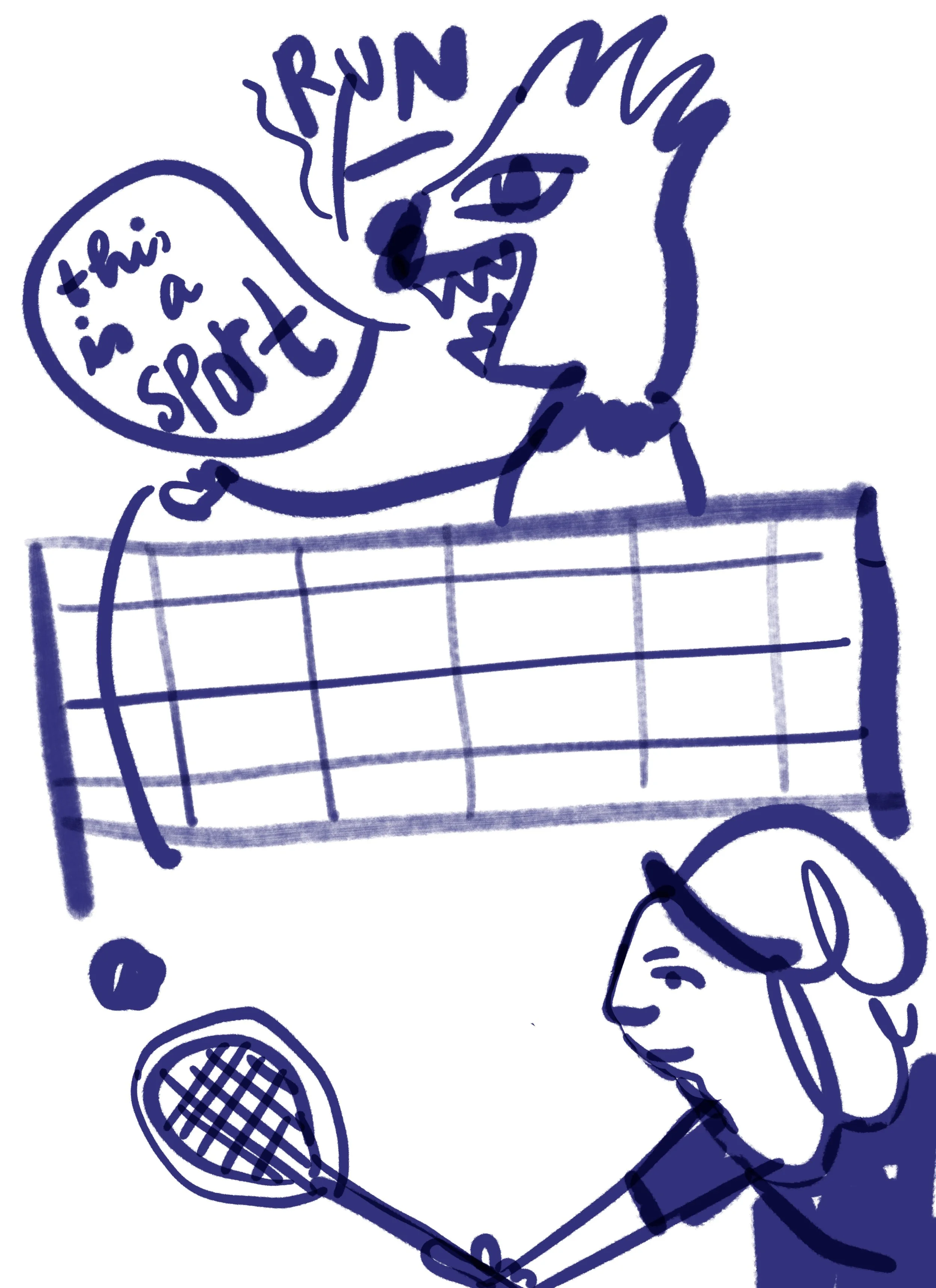 A couple of years ago I took a tennis lesson because my son and I had the idea that we would go out more and play together. I took a lot of tennis as a child but hadn’t really kept up with it. The teacher for the adult evening tennis class was a very unhappy character. He kept yelling at me and telling me to RUN FASTER! I was running plenty fast and his constant yelling made me very angry. This was, after all, a sport I was choosing to do, as recreation, on a weeknight. I came home after one such class and drew him out on my iPad. I felt better. At the end of the lesson block I calmly told my son I was quitting and going back to walking in the dunes. He was thrilled, and announced that he also wanted to quit to start fencing instead. It seemed a win win all around. Drawing it out didn’t change my issue with the teacher, but I could laugh about it. At least enough to decide that I was not going to continue. And I could move on, perhaps the most important part of all.