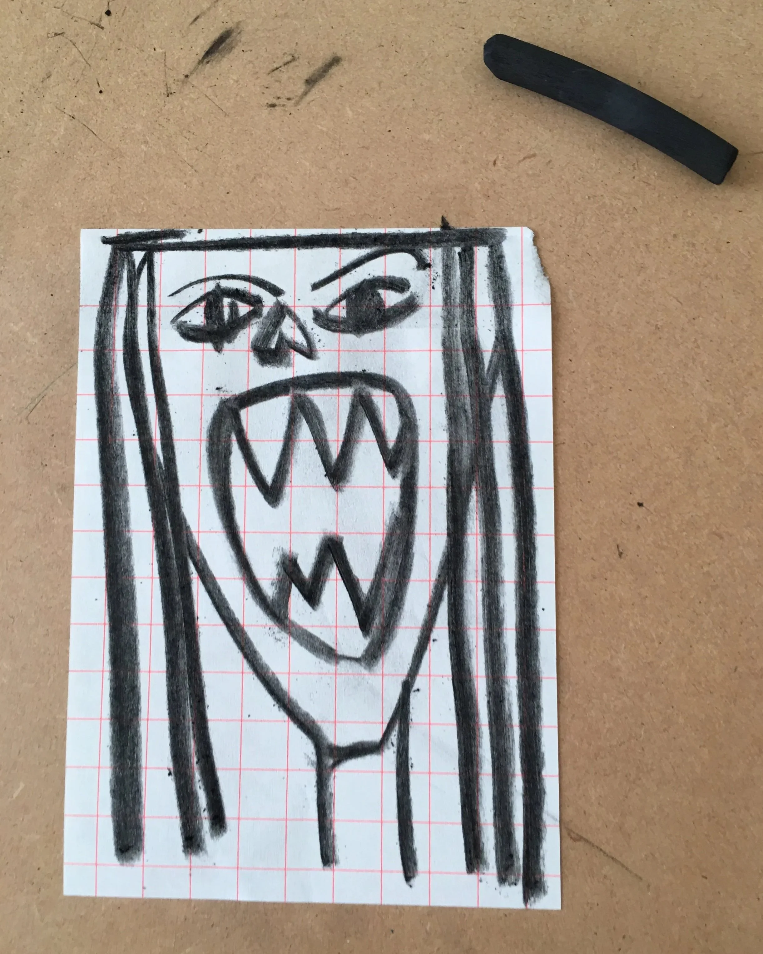 I often draw myself as the angry person. I sit with my eyes closed, take a deep breath, try to connect to the feeling (usually with gritted teeth), and then draw what I feel. With anger I am usually very literal. I’m not sure why I have a thing with teeth, but I do. Big heads and teeth and wolves. They may be totally obvious, but they work. Sometimes just giving ourselves the permission to Be Angry, to Be the big toothed mad lady, is itself a release.
